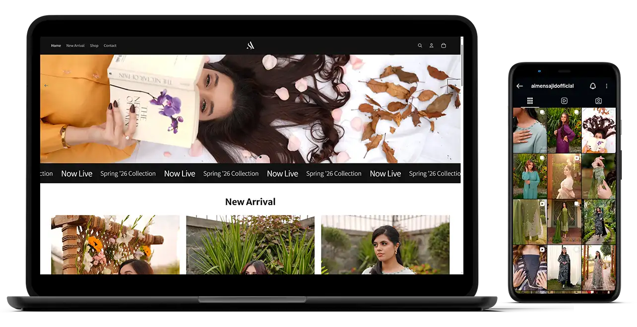 A Pakistani women’s stitched clothing brand focused on elegance and modern style. We built the brand from the ground up, developing its visual identity, launching a fully functional Shopify store, and managing social media to create a cohesive and engaging online presence.