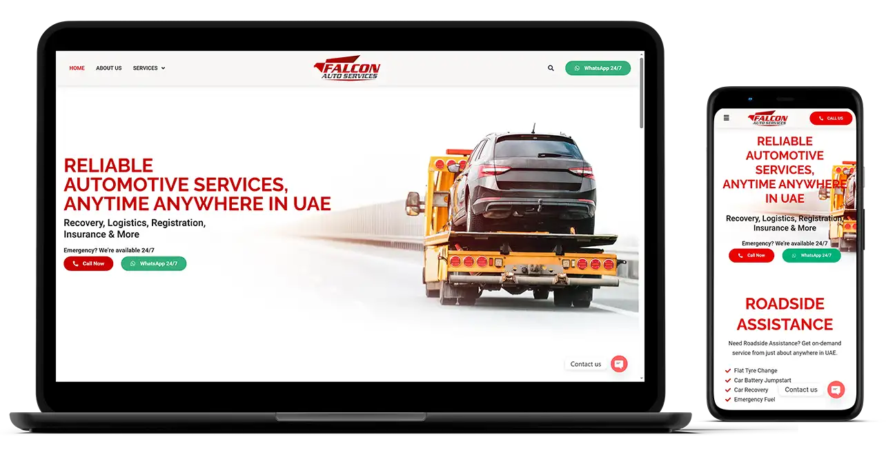 A UAE-based car recovery, logistics, and vehicle documentation assistance company. We developed a strong visual identity and a professional website designed to communicate reliability, streamline service inquiries, and build trust with customers across the region.