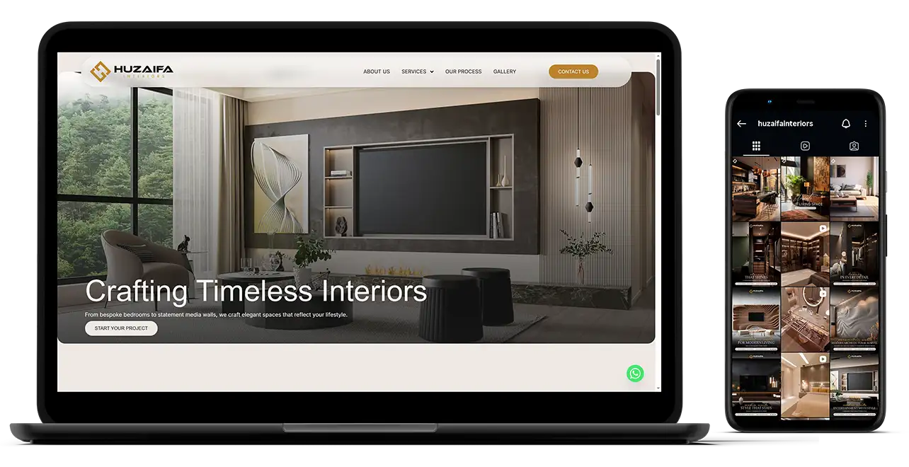 An elegant brand identity designed to reflect style and sophistication — we crafted a distinctive logo, cohesive branding, and premium stationery for Huzaifa Interiors. Alongside a modern website and impactful social media management, we positioned the brand to connect with its audience and showcase its interior design expertise.